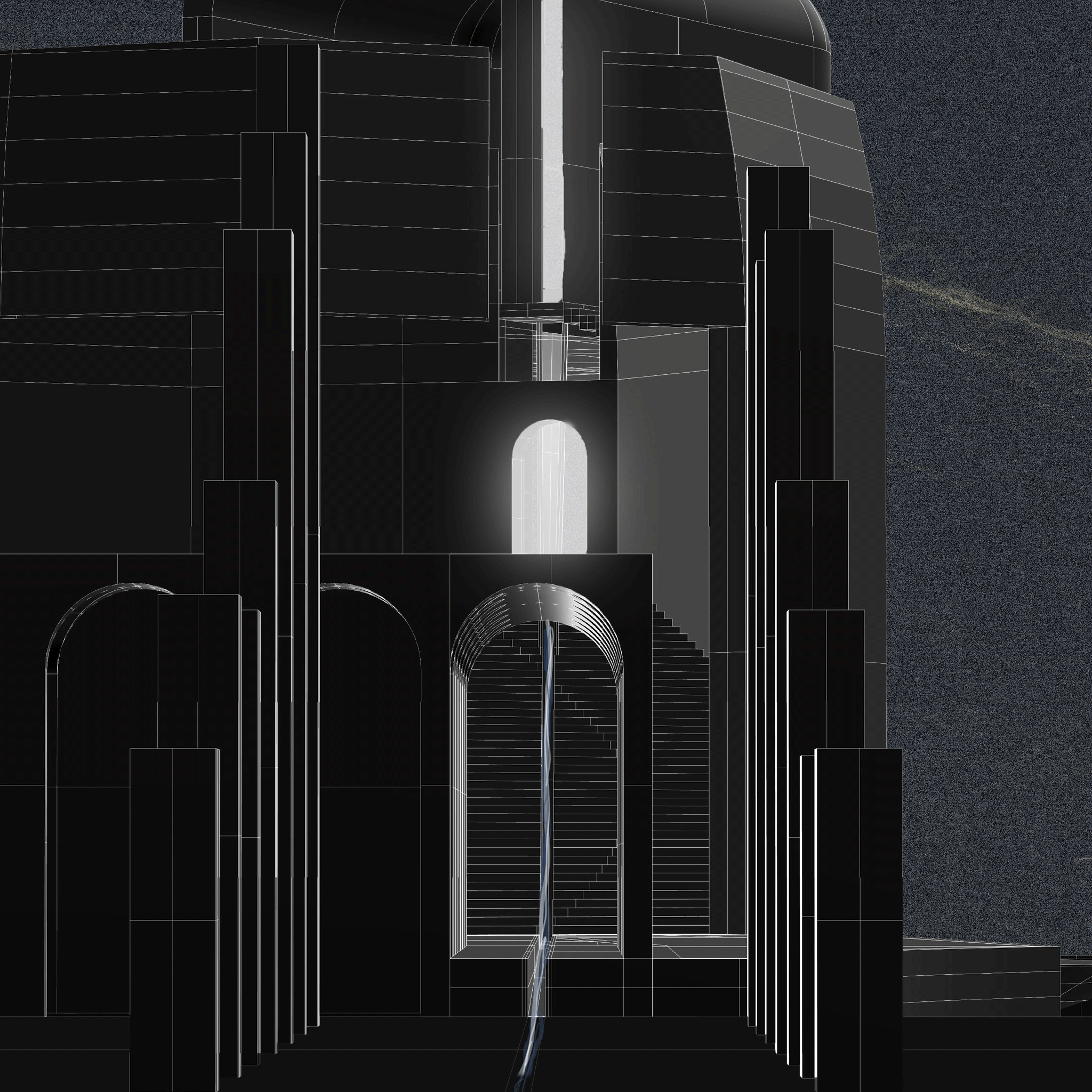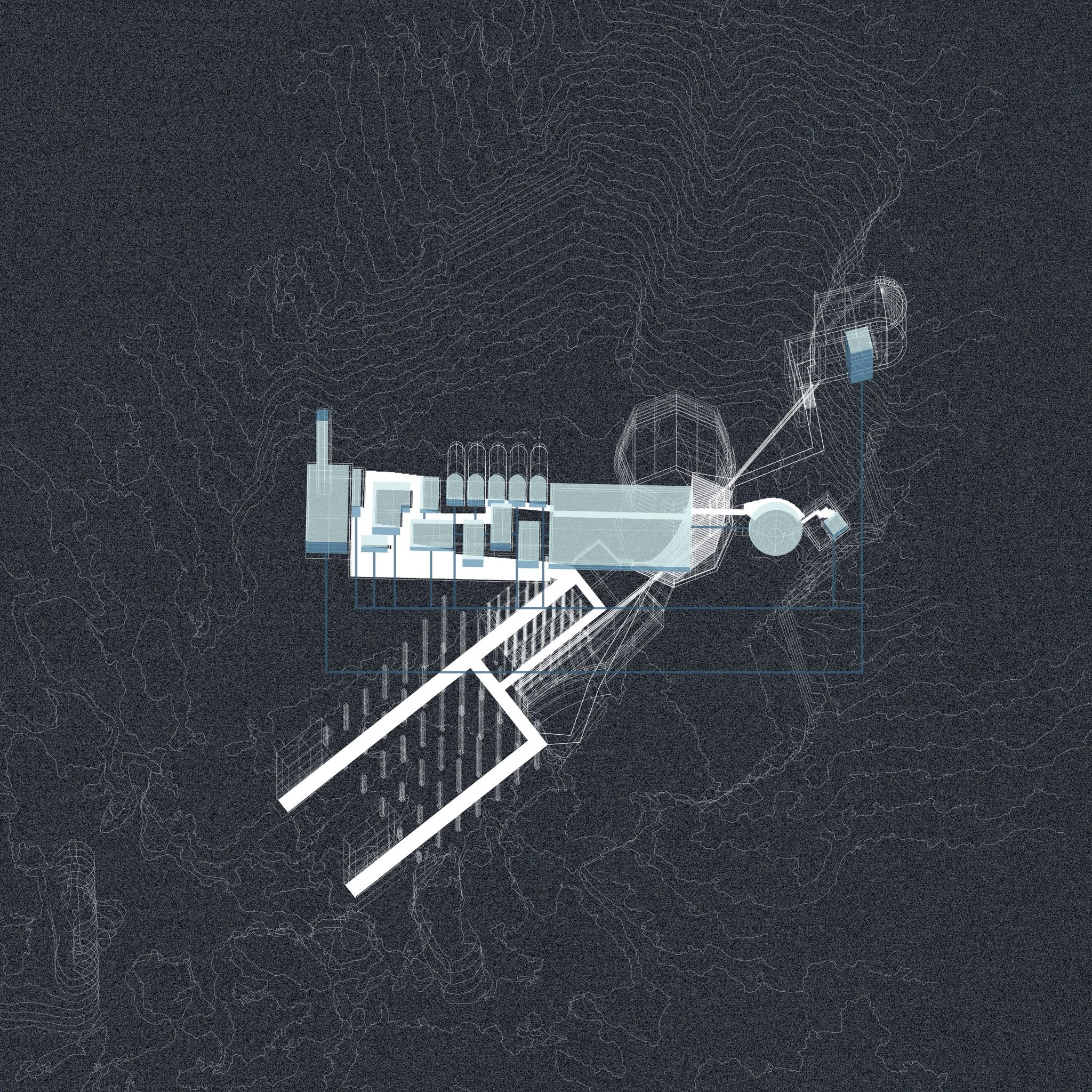 This design was composed as a result of conversations with the local history, demographics, and natural geology at Rusaella Thermae, Grosseto, Italy. The disign studio initiated a visit to the site and used photogrammetry technique for documenting the entire site context. Design diagrams were drawn in the way to work as translucent layers representing the archival history, geological and enviromental information, and potential built artifact, which gently fall onto the design context.